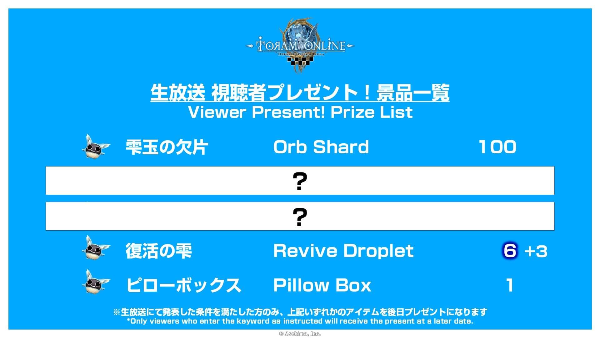 *Only the players who enter the livestream "keyword" at the determined place during the specified time are eligible for the gift.